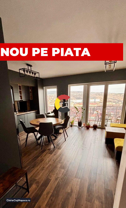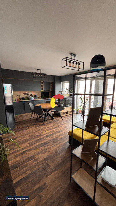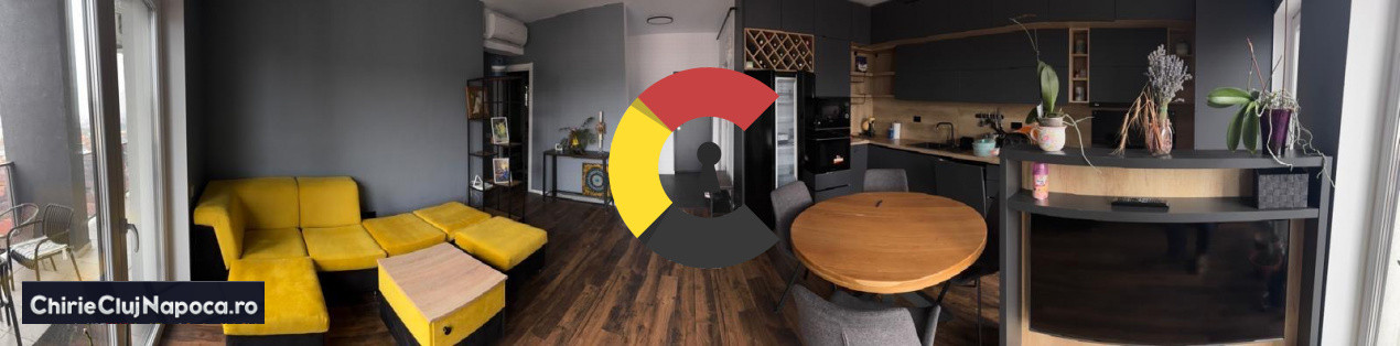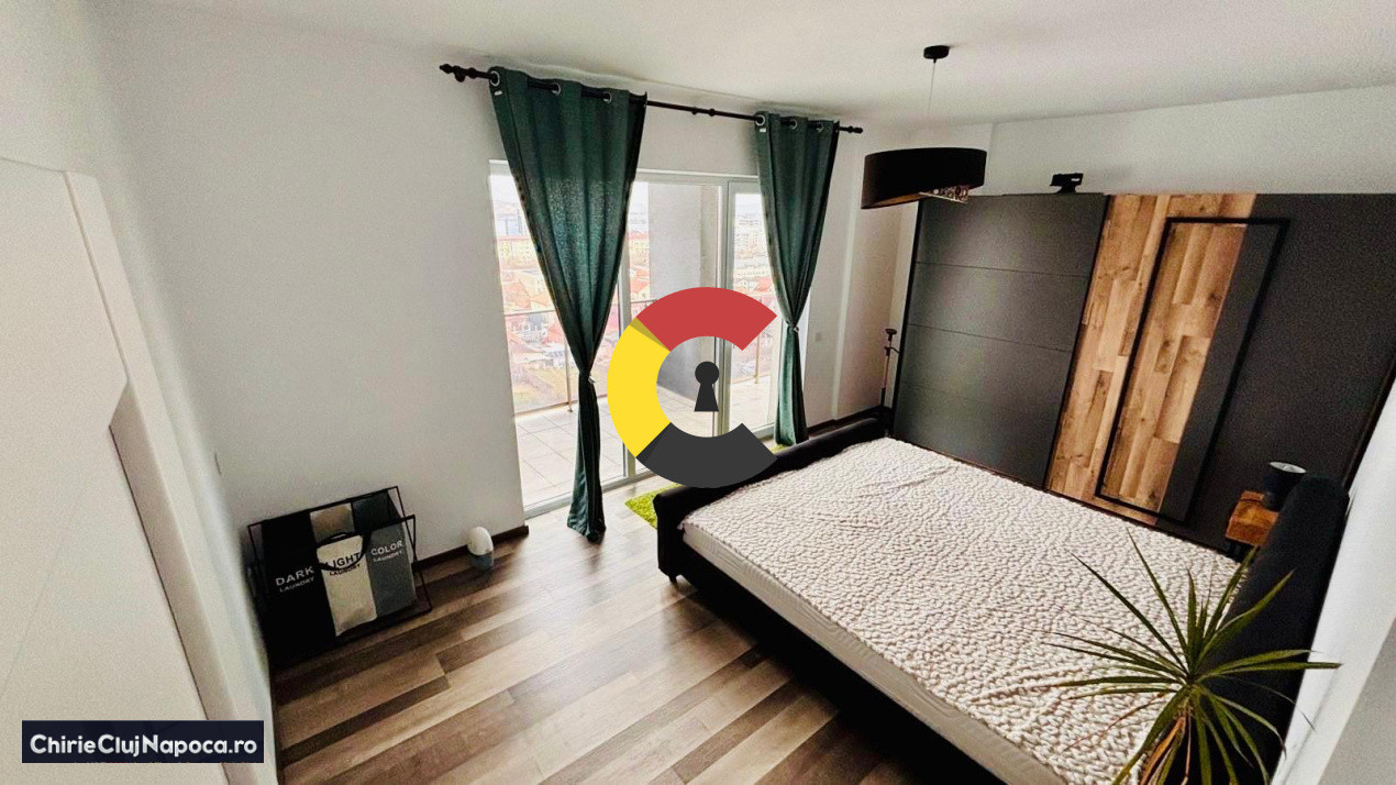 Se oferă spre închiriere penthouse modern cu 4 camere, situat pe Strada Oașului 86-90, în Cartierul Iris, într-o zonă cu acces rapid către Gara Cluj-Napoca.